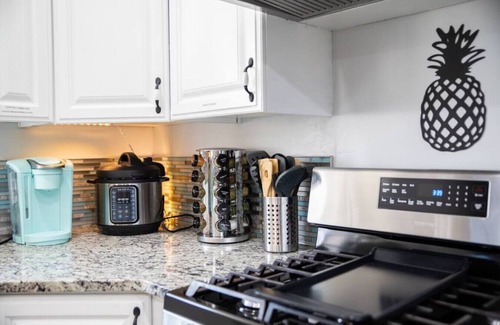 Your experience at Duke's doesn’t just end with the aesthetics; the home is equipped with exceptional amenities suited for both relaxation and entertainment. Enjoy preparing gourmet meals in the fully stocked kitchen, unwind in the luxurious master bathroom featuring a walk-in shower and jacuzzi tub, and gather in the inviting living area with a large sectional couch, sound system, and smart TV. The expansive backyard allows for outdoor celebrations, games, or simply soaking up the sun, offering ample space for guests to mingle and enjoy the festivities.