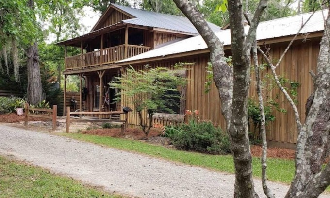 Relaxation/Visiting Family/Working in the area? This is the place! Located on the Altamaha River. It’s only 1/4 mile off of US Hwy 221 just 6 miles north of Hazlehurst, Ga. and 20 miles south of Vidalia, Ga. Surrounded by Bullard Creek WMA . Built of Cypress inside/out. Private Dock on Altamaha in the area. Private boat ramp. Spacious living rooms. Gated entrance. Grills, Pro. Deep fryer, Sit back, relax, read, and enjoy Dukes Lodge. ##The most private property on Towns Bluff Lane!!!!