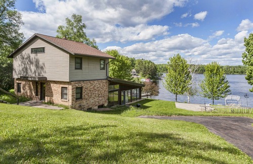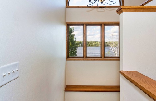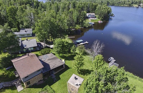 Large family home, terrific for large family or group gatherings or a quiet get away for two. This house is COVID-19 READY! Safer than staying in a hotel, this home makes it possible to get away and enjoy a lake gathering safely. Three bedroom / two bath room home on Fish Lake located 20 minutes from downtown Duluth MN. The home has one very large master suite with walk in closet and tile bathroom with two vanities and very large tiled steam shower. An extra queen mattress set can be set up in master. Main floor has two bedrooms, bath, kitchen, and very large living room with a glass wall overlooking the lake. The living room also includes a gas fireplace. New hickory kitchen and living room remodeled in 2014. The house has a newly remodeled large cedar paneled three season room with four patio doors, and a great view of the lake. Lots of room in the house to set up sleeping bags or cots. Two decks and dock on the lake. The lake is only half developed, you can boat to a resort for dinner or go farther to the part of the lake that is wild and scenic (like BWCA), great fishing. Access to Minnesota state snowmobile trail across the road for hiking from the home two blocks away. Great house for large family groups, terrific in all seasons. Fully equipped kitchen, wireless internet and satellite television. Cottage is sunny, bright, cozy. Property includes a large cedar deck with an outdoor fireplace. Truly a place to build family memories! Canoe and paddle boat for guest use at no charge, remember to bring you PFD a.k.a. Life jackets.