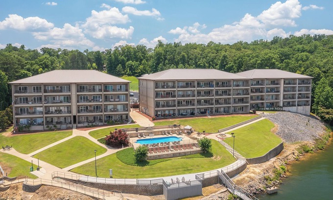 Duncan Bridge Condominium - First Floor! This beautifully decorated condo features 2 Bedrooms and 2 Baths with a patio overlooking the pool and the lake. Wake up to beautiful views of the lake from your master suite featuring a large bath, dual sinks and separate shower and garden tub. A second bedroom features a queen size bed. Additional sleeping on full size fold-out sofa. This condo offers many amenities not available in a traditional house. The condo offers a large community swimming pool (OPEN YEAR ROUND), a public charcoal grill, and a covered boat slip.
