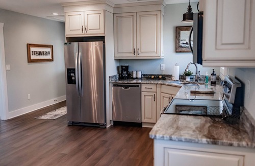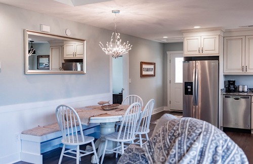 This home offers some great outdoor seating areas, one of the best ones is the screened in porch with plenty of seating and amazing waterfront sunset views. a high top 4 top table and a patio seating set gives you plenty of options to chill out and play board games with the family, Or have dinner while the sun goes down. We have an outdoor shower for when you get back from the beach and need to wash off all the sand and salt water or if you just like to takes showers outside when the weather is beautiful . There is also a seating area and small deck on the bottom of the house next to the outdoor shower, where you can hangout and watch the kids go fishing, kayaking and paddle boarding. There is an outdoor propane grill, kayaks, paddle boards, sun chairs, beach chairs, fishing poles, surf board, boogie boards all included and much more at this House finished March 2021. We also provide, soaps, shampoo, conditioner, body wash, tooth brushes, towels, paper towels, toilet paper, sheets, pillows,fresh sponges, Loofahs, laundry detergent, fabric softener and way more. Our house is stocked with pots, pans, spices, coffee/tea, oils, sugar, sandwich bags, water bottles, and the list goes on. Come make yourself feel at home in the coolest part of the Outer Banks! This house is ready to go with all the amenities for you and your family. Thank you for viewing our house have a blessed day. We look forward to your stay with us!