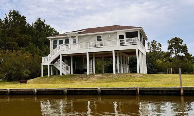 This is your home away from home, this waterfront cottage is nestled at the end of a quiet canal on a 4x4 ONLY sand road . Located just 1200 yds from the beach. This brand new house has an open floor plan that is set up to entertain. This is the perfect setup for a single family. This place is stacked with amenities. The new couch is comfy and the 65” tv is ready for movie night. You can pull your boat up right out back. There are 2 bedrooms both have a full bathroom.