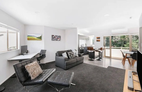 With a stunning outlook to Mount Drury, covered in beautiful Pohutukawa trees and vegetation, this three-leveled duplex sleeps 5 guests, making it an ideal getaway. The layout is also perfect for couples or corporates, and your fur baby is welcome too—just request on booking.