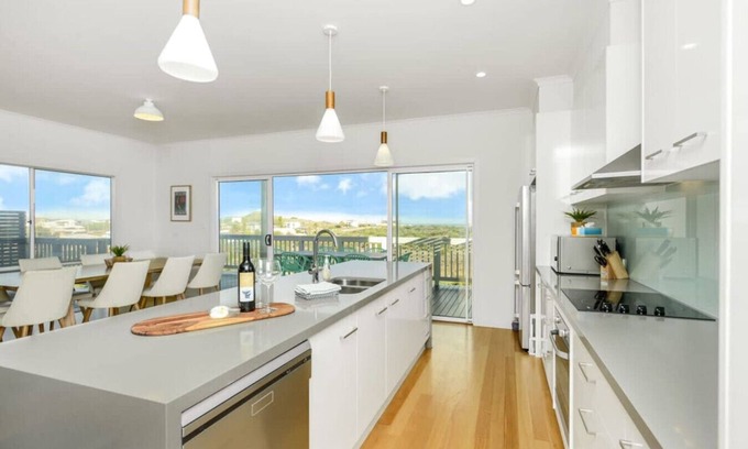 Just a 2 min walk to the surf beach, patrolled October through March, or enjoy lovely views from the house.
