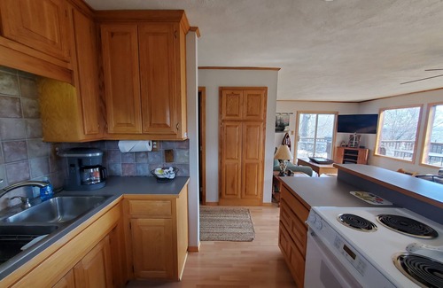 AMAZING VIEWS from most rooms. Lots of windows on three sides of the main level. Very private setting located on a dirt road.