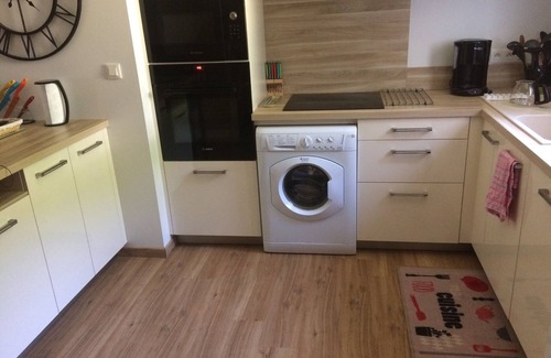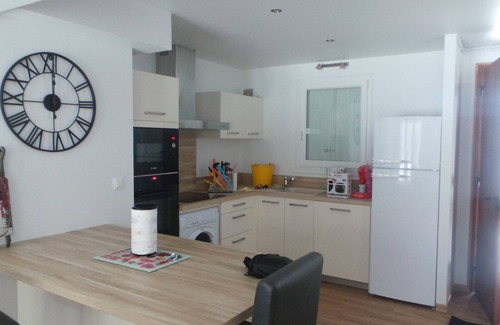 1 wc - 1 shower and 1 large room of 45m2 with new American kitchen (dishwasher, washing machine, oven, microwave, fridge and induction hob, raclette service, fondue service) + living room with sofa new convertible with two beds (high quality) and new dining room. 1 veranda.