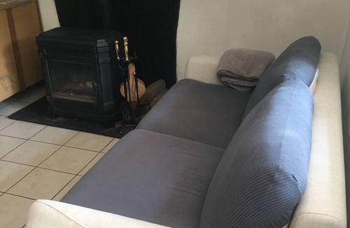 The kitchenette is equipped with an oven and a refrigerator, as well as a coffee maker, a microwave, and cookware. And there is a laundromat nearby so you can pack a bit lighter. Other amenities include a BBQ grill, heating, and a dining table.