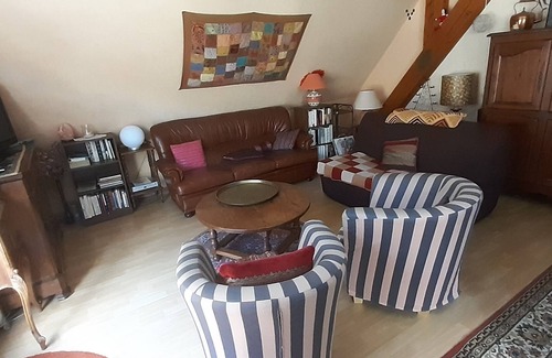 Duplex apartment, sleeps 4, quiet 100 m downtown is located in Thann. Duplex apartment, sleeps 4, quiet 100 m downtown provides accommodation, featuring Wellness Facilities, Fireplace/Heating, Internet, among other amenities. This Apartment features Wellness Facilities, Fireplace/Heating, Internet, to make your stay a comfortable one.