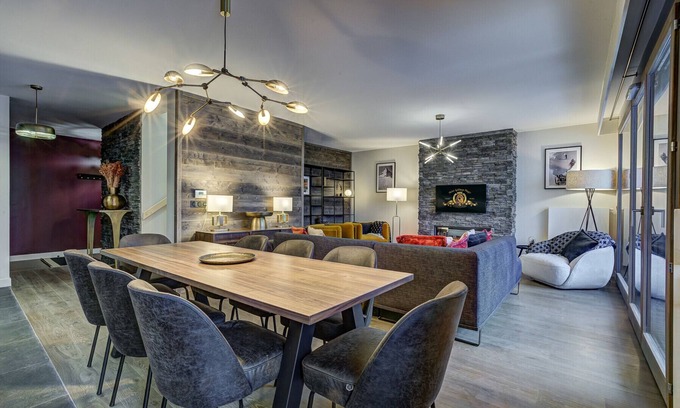 Featuring modern amenities such as a covered balcony with outdoor dining furniture, a multi-flame gas fireplace, and spacious living areas, this duplex apartment offers both comfort and style. Each of the four bedrooms can be flexibly arranged as doubles or singles to suit your group’s needs, ensuring everyone feels at home during their stay. Additionally, you'll find entertainment options like free WiFi, a smart TV, and games to keep your party entertained. Practical features such as a ski boot room with private lockers and boot dryers add convenience for winter visitors, while the proximity to parking ensures easy access despite any ongoing challenges with building facilities.
