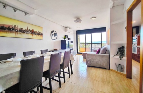 With a capacity for up to 8 guests, the duplex features three bedrooms and a living room equipped with a comfortable and spacious sofa bed. On the ground floor, there is a master suite with a full bathroom, while the upper floor offers two additional bedrooms: one with a double bed and another with two small individual-sized cribs, along with a second full bathroom. The dining and living area seamlessly integrates with the fully equipped kitchen, which includes a dishwasher, microwave, coffee maker, and a reverse osmosis system with a filtered water tap, ensuring all the comforts of home.