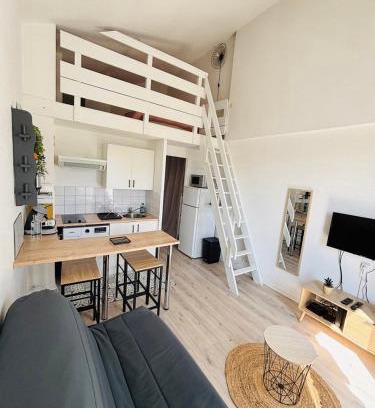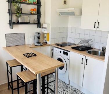 Providing a garden, Duplex cosy neuf - wifi - balcon - en bordure de forêt de pins - proche plage offers accommodations in Saint-Jean-de-Monts. This property offers access to a terrace and free private parking. Outdoor seating is also available at the apartment. With free Wifi, this 1-bedroom apartment provides a flat-screen TV, a washing machine, and a fully equipped kitchen with a microwave and toaster. Towels and bed linen are provided in the apartment. For added privacy, the accommodation has a private entrance and soundproofing. Demoiselles Beach is a 18-minute walk from Duplex cosy neuf - wifi - balcon - en bordure de forêt de pins - proche plage, while Casino of Saint Jean de Monts is 2.4 miles away. Nantes Atlantique Airport is 40 miles from the property.