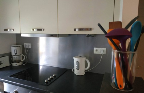 Fondue, raclette / pierrade service. Oven, micro wave oven, 4 induction hob, coffee maker, kettle, toaster, fridge with small freezer. Complete crockery .... (Champagne glasses, white wine glasses, oyster knife ...)