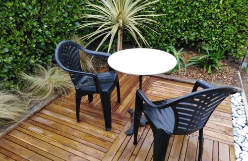 - 1 garden furniture in exotic wood (1 table and 6 chairs)