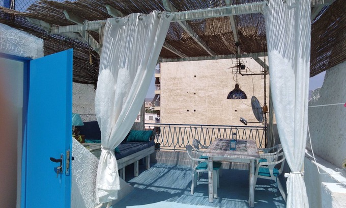 Charming house, next to the beach and the port, on two floors with a terrace in the center and at the same time a quiet place at the foot of the Castle with beautiful views from the terrace to the Bay of Levante, the sea. In vintage style, the house has a hot tub for two people and on the terrace it has a gazebo space with sofa and table to enjoy dinner and breakfast overlooking the Bay. The house is cool in summer, the breeze always runs.