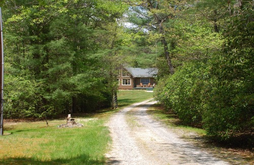 Enjoy resort amenities in a log home setting. Located in Cedar Mountain NC just minutes south of Brevard, we are situated on just over 40 acres with a two bold mountain streams and a waterfall marking our northern border and a 35 undeveloped acres to our east. The stream closest to the cabin has a small beach and wading pool perfe
