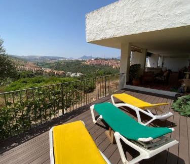 Duquesa Bella Vista - with pool and private garden is located in Manilva, just a 18-minute walk from Sabinillas Beach and 3.4 miles from La Duquesa Golf Club. This apartment features air-conditioned accommodations with a balcony and free Wifi. El Paraíso Golf Course is 17 miles from the apartment and La Quinta Golf & Country Club is 21 miles away. Featuring a terrace and mountain views, the spacious apartment includes 2 bedrooms, a living room, flat-screen TV, an equipped kitchen, and 2 bathrooms with a bath and a shower. Towels and bed linen are offered in the apartment. The property has an outdoor dining area. Guests can enjoy the outdoor swimming pool and garden at the apartment. Estepona Golf is 6.5 miles from Duquesa Bella Vista - with pool and private garden, while San Roque Golf Course is 12 miles from the property.