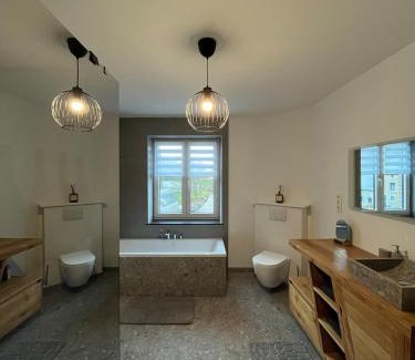 Durbuy, l Olivier, Maison charmante 4 façades en pierre du pays offers accommodations in Durbuy, 21 miles from Plopsa Coo and 27 miles from Circuit Spa-Francorchamps. The vacation home, set in a building dating from 1950, offers free Wifi and free private parking. Adventure Valley Durbuy is 4.3 miles from the vacation home and The Labyrinth of Barvaux-sur-Ourthe is 4.8 miles away. Featuring garden and inner courtyard views, this recently renovated vacation home provides 2 bedrooms and opens to a balcony. Providing a terrace with river views, this vacation home also provides guests with a flat-screen TV, a well-equipped kitchen with a dishwasher, an oven, and a microwave, as well as 1 bathroom with a walk-in shower and a hair dryer. The property has an outdoor dining area. Available, the breakfast at the property includes à la carte dishes along with a selection of fresh pastries and juice. There is an on-site coffee shop. Guests at the vacation home will be able to enjoy activities in and around Durbuy, like walking tours and bike tours. Guests at Durbuy, l Olivier, Maison charmante 4 façades en pierre du pays can enjoy fishing and hiking nearby, or make the most of the garden. Congres Palace is 31 miles from the accommodation, while Barvaux is 3.9 miles away. Liege Airport is 39 miles from the property.