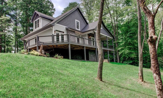 Private, newly built home located on 30 acres of private mountain acreage. You are app. 25 minutes from downtown Asheville, 35 minutes to the Biltmore Estate, & less than 45 minutes to the Asheville Regional Airport. Home is accessed via only paved and fully maintained roads.