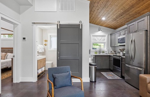 Your experience at Sycamore Grove includes high-end amenities designed to make your stay comfortable and memorable. Each home showcases modern finishes, airy layouts, and abundant natural light. The White Wood is a cozy 1 Bed/1 Bath retreat sleeping four, while the spacious Blue Spruce hosts 2 Beds/1 Bath accommodating five guests. Enjoy serene mornings on private patios or evenings gathered around the communal fire pit overlooking the tranquil lagoon. Additional features include fully equipped kitchens, laundry facilities, and multiple entertainment options, ensuring you have everything needed for a delightful stay.