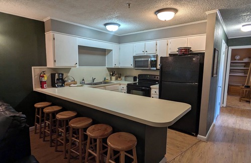 Ski in ski out condo onto the slopes of Winterplace Ski Resort. It is located on the second floor and the balcony overlooks the "Last Chance" slope. The condo sleeps 8 with two Queens, bunkbeds, and pull out couch. The kitchen is equipped with essentials including a coffee maker, pots and pans, an above range microwave, dishwasher, and everything you'll need for your stay. The living room contains an electric fireplace and a view out the sliding door onto the slopes. Towels are provided.