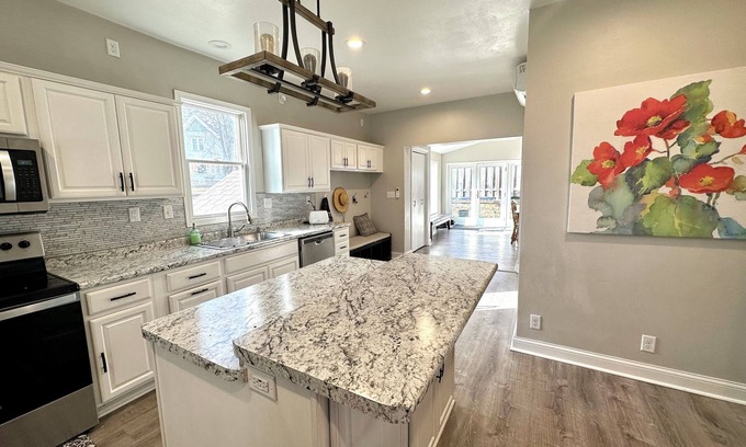 Welcome to EAA Favorite- Spacious 5 Bedroom home sleeps 12, 21 miles to EAA, where charm meets comfort in the heart of Kaukauna, Wisconsin. This beautifully renovated historic property is perfect for hosting your wedding party or accommodating guests for an unforgettable celebration. With ample space for up to 12 guests, you can kick back and enjoy your special day surrounded by loved ones in a picturesque setting that elevates any wedding experience.