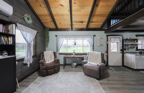 Eagle Lake Cottage is a brand-new rental nestled in the hills of Dunnville, KY. This picturesque house sits on the shores of a small lake where you can watch the fish being fed (except during the winter) and enjoy the wildlife that it draws to the area, including a bald eagle that appears almost daily to fish. The cottage sleeps six and has one bedroom with a king-sized bed, a queen-sized bed in the loft, and a comfy sleeper sofa in the living room. There is also a kitchen that is stocked with the basics for cooking and baking, and one full bathroom. Outdoors is a lovely porch and firepit area for cozy evenings around the fire with loved ones. You'll find this rental sparkling clean and tastefully decorated, making your stay peaceful and worry-free. Book today and enjoy the tranquility of Eagle Lake Cottage.