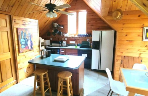 The private Eagle studio has lots of character with its gabled vaulted ceiling, gothic window in a dining area, a comfortable queen bed, a twin bed, a sitting area with Tv/ROKU - great for a group of 3 guests! The en suite bathroom has a one-person jacuzzi tub with a shower. Guests can use a full size refrigerator, an electric stove and a full kitchen with everything necessary to make a meal. The studio is located on the 3rd floor with the entrance thru the house and gives guests full privacy. The door has a regular keyed entry.