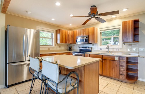 Embrace the essence of lakeside living when you book this vacation rental in Eagle Rock, ‘Quiet Waters!’ Perfect for a couple’s getaway or a family escape, this 2-bed, 2-bath home features a full kitchen, 2 screened decks, a gas grill for family barbecues, and a fire pit for cozy evenings spent watching the sunset. Up for adventure? Head to Roaring River State Park for a day of trout fishing!