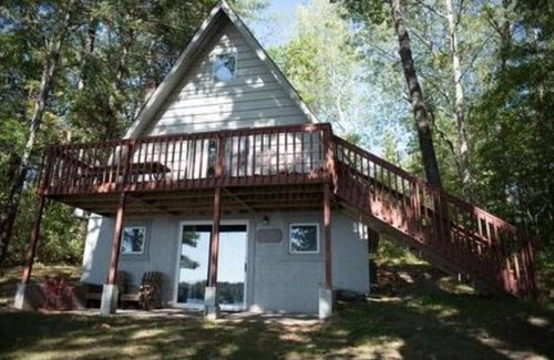 Eagles Nest is an A-Frame cottage nestled into the wooded hill-side with a beautiful view of Lake Nettie. It is the largest cottage out of 8 and host up 8 guest. This three-story home has a walk-out basement with 2 sets of full-sized bunk beds, hosts the kitchen and living quarters on the second floor, and a set of bedrooms rests on the 3rd floor. It has a compact kitchen, comes with a 14' aluminum boat, picnic table and of course, your own private dock. A few Adirondack chairs sit around a private fire-pit for you to relax and enjoy the sites and sounds of NettieBay.