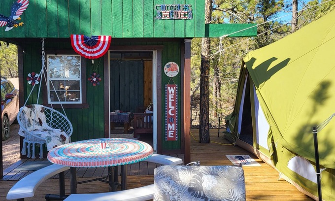 Eagle's Nest Cabin/Sibley4 Tent combo @EvansCliff hot tub canyon views | Cabin in Hot Springs