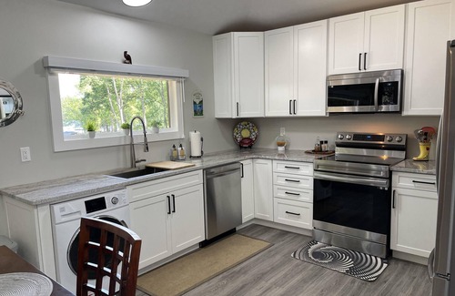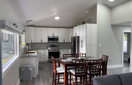 The cottage comes well stocked with amenities, internet, Wi-Fi, HD smart tv where you can sign in and enjoy Netflix, Hulu, etc. Provides two bedrooms, three queen beds, six place settings at the kitchen table which also extends out if needed. The kitchen is fully equipped with cookware, plates, utensils, granite countertops, stove/oven, microwave, dishwasher, and a compact washer/dryer combo. Plenty of cabinet storage for your needs. Fresh new bathroom with Bluetooth speaker with changing lights.