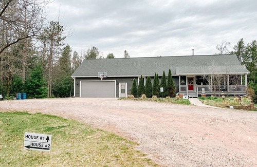 Eagle’s Nest Guest House I, the OG, has been built out to comfortably host groups of 8-24 or less where each guest has their own bed within their own private home. NO BUNK BEDS OR SLEEPING ON SOFAS! The sprawling floor plan and amenities cater to golf groups, weddings, families visiting the Dells, and weekend warriors all the like. It’s a comfortable, convenient, and affordable stay that has been tastefully decorated with personality and modern furnishings. The cedar sided house is on approximately 11 acres and is 3,500 sq. ft. including 5 bedrooms, 5 bathrooms with lasting hot water and great water pressure, 8-16 beds, 1 rec room, fully equipped kitchen, game room, 8 flat screen smart TVs w/HD plus a surround sound system (1 DVD player), deck with grill and backyard fire pit with chairs, key coded entrance (no keys necessary), ample parking, and much more!