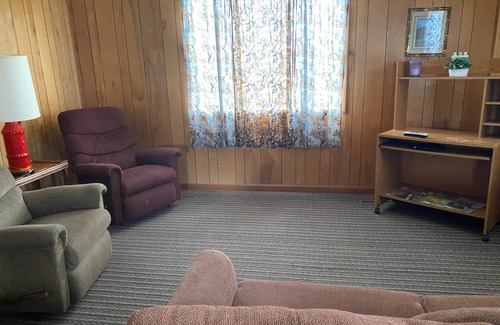 Eagle's Nest - two-bedroom cabin, one bedroom has a two full beds and the other a queen and a full, there is also a sleeper sofa and two recliners in the living room area. Fully equipped kitchen. Located above garage with outside stairs.