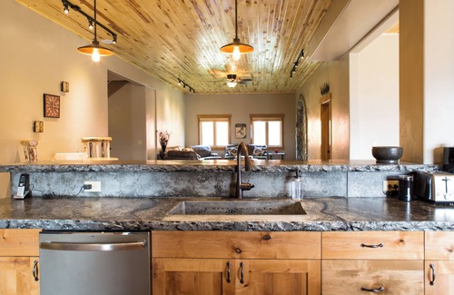 This Star Meadows Ranch home is a 3-bedroom house perfect for your escape to the mountains. With a king bed, queen bed, and queen bunk bed, guests will have plenty of space to unwind after a day of exploring. The property features a jetted bathtub, Wi-Fi, in ceiling speakers, and a cozy heating system for those chilly nights. Kickback, relax, and enjoy everything Whitefish and our house has to offer. We have multiple houses on site and can accommodate both small and large groups.