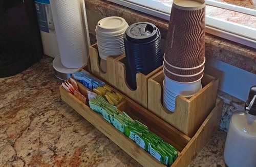 Start your morning off by admiring the views from your spacious 600 sq. ft. deck or drink a cup of coffee next to the fruit trees in your private patio garden. The elevated loft offers a unique perspective and a peak at Avalon Bay.
