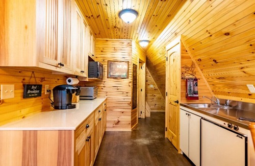 Come stay at Eagles Rest Cabin located in our gated private property and escape from the hustle and bustle of everyday life. This cabin offers a comfortable living room, dining area, a well equipped kitchen for all your meal needs, queen bedroom on main, two twin beds in the upstairs loft, a sleeper sofa in the living room and a bathroom on main level to accommodate 6. Relax and unwind in the 4 person outdoor hot tub available for your enjoyment as well as, lots of outdoor amenities such as the park style charcoal grill, and fire pit area.