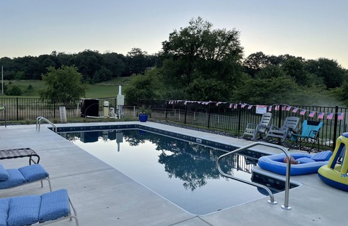 Come to Blacksburg to cheer on the Hokies, or attend graduation and stay in my newly built 3 bedroom/2 full bath home on 2 acres, with a private heated pool in the backyard and play set for the kids. House is surrounded by horses and beautiful mountain views. Bring your family and enjoy the game, or graduation and come home to relax by the heated pool and grill out! House is located only 5 minutes from VT.