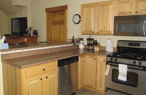 It is fitted with an open plan kitchen with kitchen counter seating, a dining area that seats six. Living room includes a gas fireplace, comfortable couch, two leather arm chairs, a 32'' plasma HDTV..