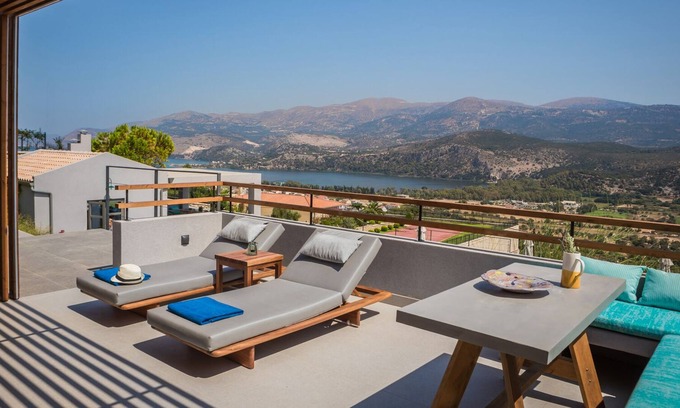 This is a studio of 60 m2 with a double king size bed, spacious living area, seperate shower and wc, kitchenette and working area. There is a beautiful 30m2 terrace with sunbeds and nice sofas with dining table and wonderful views to the valley and capital gulf.