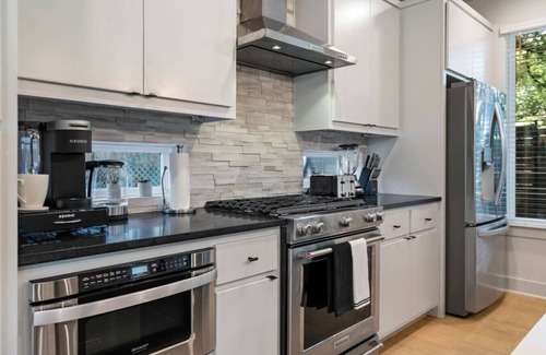 Perfect for groups up to 13, this East Austin stay includes a modern 4-bed, 3.5-bath home and a stylish 1-bed apartment on the same property. Enjoy spacious interiors, fully equipped kitchens, fast Wi-Fi, smart TVs, and a shared yard with fun outdoor games. Located minutes from downtown with easy access to Austin’s best dining, music, and nightlife. Ideal for large families, friends, or work trips looking to stay together with space to spread out.