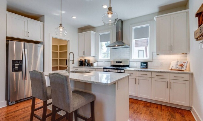 This modern style 2 bedroom 2.5 bathroom East Nashville townhome is perfect for group trips if you're looking for something centrally located in the heart of the city. We are only a 5 minute drive to downtown Broadway and 5 minutes to East Nashville bars and dining! Other features of the home include an attached 2 car garage with electric vehicle hookups & an open floor plan perfect for entertaining including a chefs kitchen. We cant wait to host, welcome to Music City!