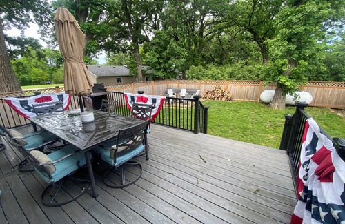 Relax with the family and invite some friends to this charming and peaceful place to get away. Just a short distance from East Okoboji lake and minutes from Okoboji fun for the entire family. Fenced in backyard with deck, fire pit, and hot tub.