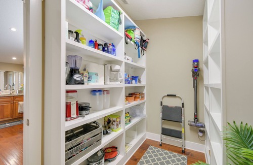 KITCHEN: Dishwasher, coffee maker, blender, slow cooker, toaster oven/air fryer, fridge w/ ice maker, stove & oven, microwave, dishware/flatware, trash bags/paper towels, cooking basics, spices, walk-in pantry
