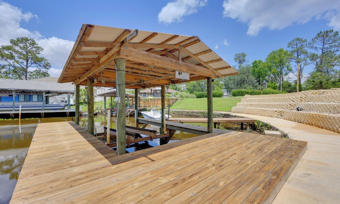 Your next fishing excursion awaits at this 3-bed, 2-bath East Palatka vacation rental! Featuring 2 living areas, 5 Smart TVs, and a private boathouse, this home is great for boaters and anglers alike. Sip your morning coffee on the patio, then head down to the dock and cast a reel! Hoping to get out on the water? Launch your boat at the Elgin Grove Boat Ramp and coast along the St Johns River. After your adventure, cook your catch on the charcoal grill!