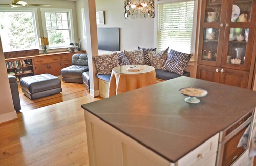 The kitchen is well stocked for enjoying a traditional crab feast, whether you cook it all up yourself or bring it in (the crab cakes at Clark's Seafood cannot be beat). You'll find all of your basic spices (Old Bay!) and oils and plenty of pots and pans. Enjoy your indoor meals at our cozy built in nook in the kitchen, at the island bar, or at the dining table off the living room. If you prefer to eat outside, we also have the latest infrared electric barbecue grill on the deck just outside the back kitchen door so it's easy to move from the kitchen to grill to nearby picnic table.