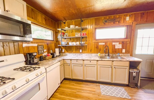 Gambling at Ho Chunk Casino is also just minutes away in addition to snowmobiling, four-wheeling, and skiing. The newly-renovated rustic cabin has 2 bedrooms and one spacious full bath with a full kitchen available for your use, which has all the needed accessories for a get away in addition to 3 smart TV's for your entertainment. The kitchen is fully equipped with everything needed to cook for a party of 4 or a small romantic meal. Cozy up to the fire pit outdoors or enjoy a BBQ at the outdoor covered picnic area, which is the perfect place to spend the day relaxing, visiting, or simply enjoying the brilliance of Southeast Wiscsonsin's starry sky. Wildlife sightings regularly include deer, turkey, fox, chipmunks, squirrels, and dozens of species of birds. The property is on a body of water* with a private pier that you can fish from and also enjoy the views of the water, in season. Adams County Castle Rock Park is about 20 minutes away and open year-round, which is a 141 acre park on the 4th largest body of water in Wisconsin. The park also has a designated swimming area, boat launch and snowmobile unload/load area.