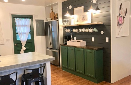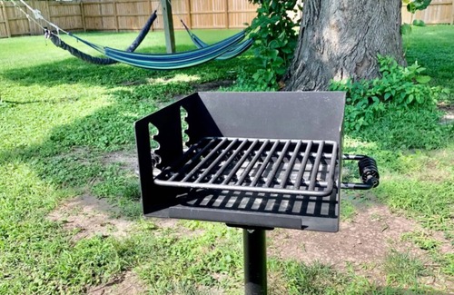 If you'd like to get out of the house for a while, you are more than welcome to make yourself at home in the large fenced backyard that is shared with the Little Blue house (also on VRBO) next door. There is a small park grill (bring your own charcoal and lighter fluid) as well as hammocks, a small play house, and a great big green space.