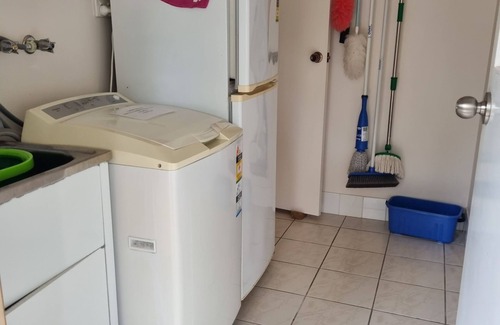 The laundry has a good sized washing machine with easy access outside to the clothes line. There is also a second fridge.