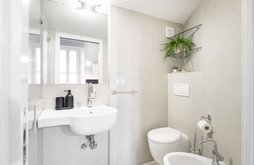 The impeccable bathroom is equipped with a spacious shower, designed to offer a relaxing corner after a long day spent in the streets of the center.