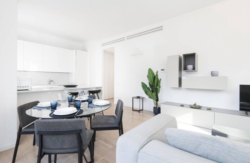 Stunning modern and elegant A1 class apartment with exclusive design 100% Made in Italy. The dwelling consists of a comfortable and cozy living area with a large and bright open kitchen, sofa and Smart TV. The sleeping area includes two double bedrooms one of them with elegant room service. Benefit from the breathtaking view of Milan Cathedral from the rooftop condominium. Don\'t miss the opportunity to live in maximum comfort and style in the heart of the historic city center.